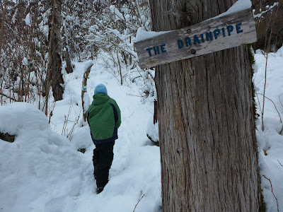 I'm not much of a New Year's celebration kind of person except for the fact that I get extra days off from work. The 2016 new year celebration was a four day retreat to the north shore. Along for the ride were Clover and Ragweed and their four kids, Scoot,Wiggles,Butterscotch, and Prof. X. They are related to us in a round about way and enjoy many of the same outdoor actives as our family....it was a perfect fit for fun and adventure. Since Clover and Ragweed were on a smaller time allotment, we got down to playing right away. Everyone voted for nordic skiing with the only problem being the snow near the shore of Lake Superior was sparse, affording only a short, groomed, cross country ski loop at Tettegouche State Park.....little did we know there was a much better spot further inland. This worked well considering the spread in age and ability of our group of eleven. After everyone skied the loop multiple times, forward and back, or spending time on the only down hill section , we moved further up the hill for a hike. Our destination was the Drain Pipe on the Superior Hiking Trail. While setting up for skiing earlier, a guy in the parking lot suggested it might be something worth checking out. We set off as the daylight began to wane and returned just soon enough that our lack of artificial light didn't cause us any problems. Dinner followed soon after the hike, once finished, I began recruiting kids and adults for a camp fire down by the lake (Superior) at Black Beach.....about half stayed home. It was a near perfect night, almost no wind, lots of stars, and a slight glimpse of the northern lights. We stayed long enough for everyone to tell their funny stories and catch up from the last time we saw each other as the final pieces of wood were placed on the fire. By New Years Eve standards it was still early, we returned home around 9:30pm, ate some treats and watched movies. I never saw midnight, but I know from being awakened that most of the kids did. After breakfast the next morning we headed out on yet another hike to a river further north. The waterway was a little sketchy due to the fall-like temps as of late but that just made the hike more interesting as well as a challenge. We all had fun, and no one got wet. On our way back we stopped at Temperance River State Park and played around on the beach.....we all had fun,and EVERYONE got wet! Unfortunately after dinner on New Years day Clover/Ragweed bunch had to head home. Our family still had two days in which to wear ourselves out before returning to school and work. Saturday morning I found the good ski trails while out driving around to get my morning fix of caffeine. After breakfast the five of us skied a long loop on the Northwoods trail system, and all the practice I have suffered through on Pike Island with my younger two has paid off. It was magnificent.....the sun was out, the trees were covered in fluffy snow and no one was crying. After skiing, I broke off on my own to check out the newly "labeled" fat-bike trails at Split-Rock Lighthouse State Park. Due to lack of snow they weren't grooming yet but the trails were still open....to everyone. The going was very tough in the 3-4 inches of soft snow that comprised of foot prints, ski tracks and a couple other fat bikers. the reward came on the return trip of my loop route when I followed close to the lake and got some fantastic views. By the time I got home I was pretty cooked and wanted nothing more than a relaxing night on the couch and time spent watching movies on my eyelids. My youngest, Big D, wasn't having it...before we left for the long weekend he and I spent a couple hours packing gear so we could go winter camping over the long weekend. No amount of bribery, candy or otherwise, could get him to back down from having me take him camping. As much as I wanted to stay in, I could not let him down and admired his strong will and resolve to go camping in the cold, wind, and snow. We packed gear for four but G Man decided to sit this one out....I envied him. Big D and I convinced SuperY to join us, this didn't take much persuading as these two are pretty tight...I call them The Buddies since they do everything together. Setting out from home, we hiked for a solid hour on snowmobile trails, crossing a lake, and choosing a spot as much out of the wind as possible. We had plenty of time to set-up, build a fire, cook hot-dogs, drink coke, and eat pop-tarts....way too much time. No matter where we stood the wind was blowing the smoke on us at all times. We didn't have much luck at staying warm either, the wind was just too much. The end of our night came when Big D put his entire foot through the ice near the shoreline and filled the boot to the top as well as soaking his leg just short of the knee. I stayed near the fire, boot in hand, doing my best to dry it while the Buddies got into their sleeping bags. It wasn't even 9 o'clock when I was already dozing off in my own bag. Let me tell ya...the buddies are weird, they were up for at least an hour and a half acting out cartoons and fail videos from youtube. I eventually had to take their headlamps and tell them to go to sleep. The next morning was tough, it was around 12deg F and the boot was frozen solid. We had planned on eating only a pop-tart, breaking camp and getting home in time for mommy to have our breakfast ready. I ended up cutting the tongue out of the boot with my hatchet just so he could get it on. His foot was cold only for the first 15 minutes and the remainder of the walk home was enjoyable.
